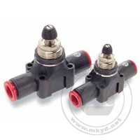 R07 G 1/8, G 1/4 管接式调压阀适用于通用气动应用 标准型采用溢流式 非上升式调节旋钮带有快动锁 流体:压缩空气 最大压力: 透明杯:10bar(150psig) 金属杯:17bar(250psig) 工作温度: 透明杯:-200~+50℃(0~+125℉) 金属杯:-200~+65℃(0~+150℉) 气源必须充分干躁,以避免在气温低于+2℃(+35℉)时结冰 除颗粒能力:5μm或者40μm滤芯 空气质量:符合ISO 8573-1三级和五级标准(微粒) 进口压力为10bar(100psig),设定压力为6.3bar(90psig)、设定压降为1bar(15psig)时的典型流量: 1/8”气口:6.2dm3/S(13scfm)带5μm滤芯 1/4”气口:6.5dm3/S(14scfm)带5μm滤芯 滤杯标称尺寸:31ml(1液量盎司) 压力表接口: 1/8”PTF,带PTF主接口 1/8”ISO Rc,带ISO Rc主接口 1/8”ISO Rc,带ISO G主接口 排水连接:1/8”管子 自动排水工作:当气流量发生变化或供气压力下降时,进行间歇性喷吐式排水。